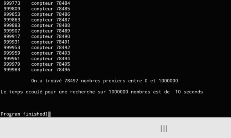 Je suis arrivé a compiler ton programme de base (le premier que tu as publié). Assez rapide, mais pas mis de compteur. J'ai fait entre 0 et 5000. Il trouve 668 NP. Je dois faire cette somme de NP avec mon programme pour comparer. Je rappelle que mon programme est sans interet , bourrin car recursif, reprenant la racine carrée des diviseurs des nombres precedents a tester. Ce qui devient vite assez effroyable. Il n'a donc aucun interet, sans aucune subtilité mathematique, devient tres lent a tres tres lent jusqu'a l'arret selon la puissance du processeur MAIS on est SUR a 100% d'avoir TOUS les NP. Le but: comparer les deux programmes le le plus scientifiquement possible :-)