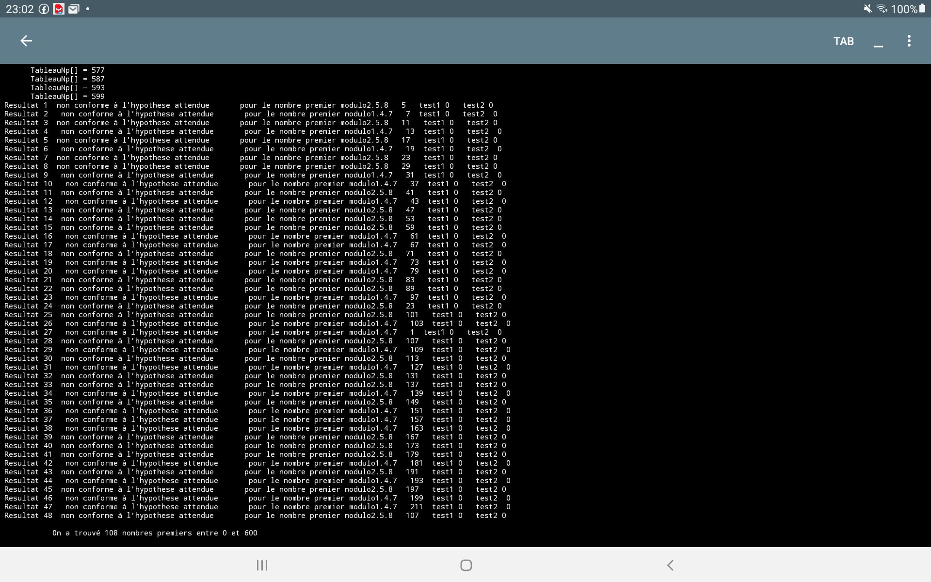 -Ecris l'index de chaque nombre premier. Le controle sera ainsi beaucoup plus facile. Exemplen 1#1, 2#2, 3#3, 4#5 tc....Je dois le faire aussi.