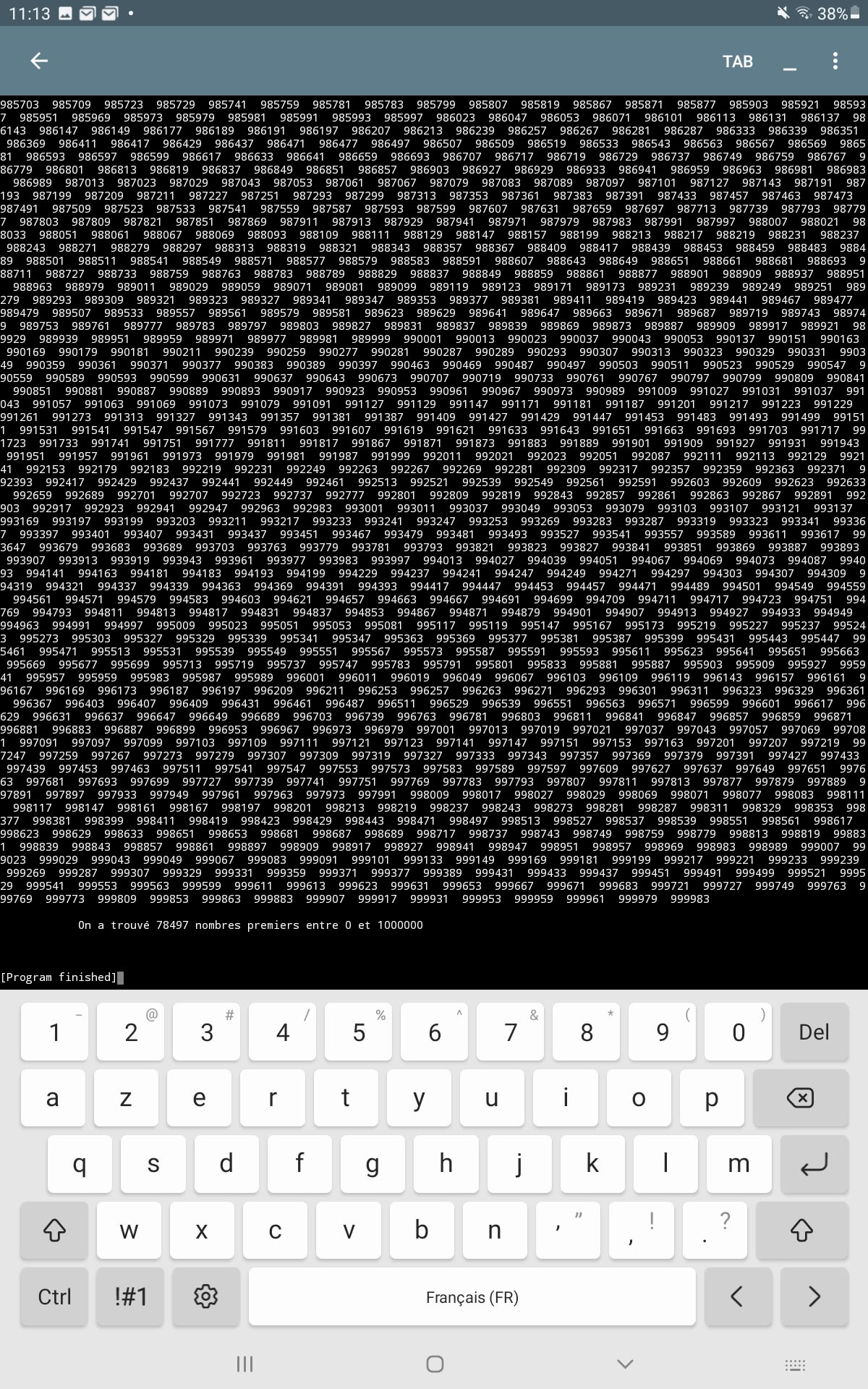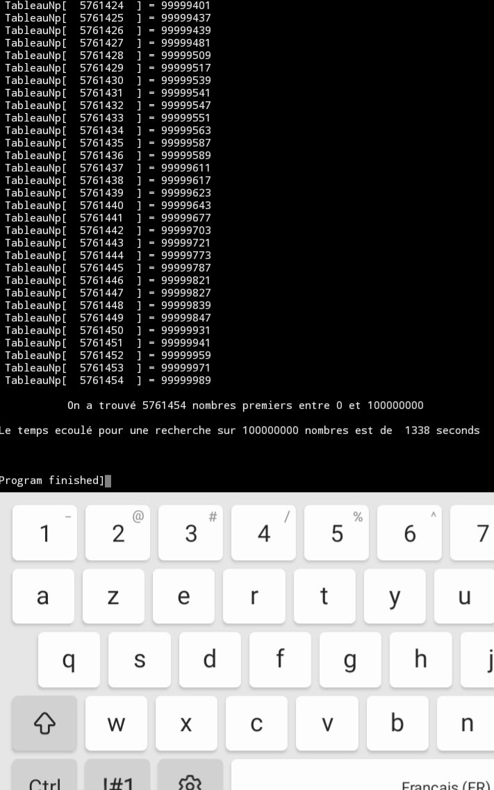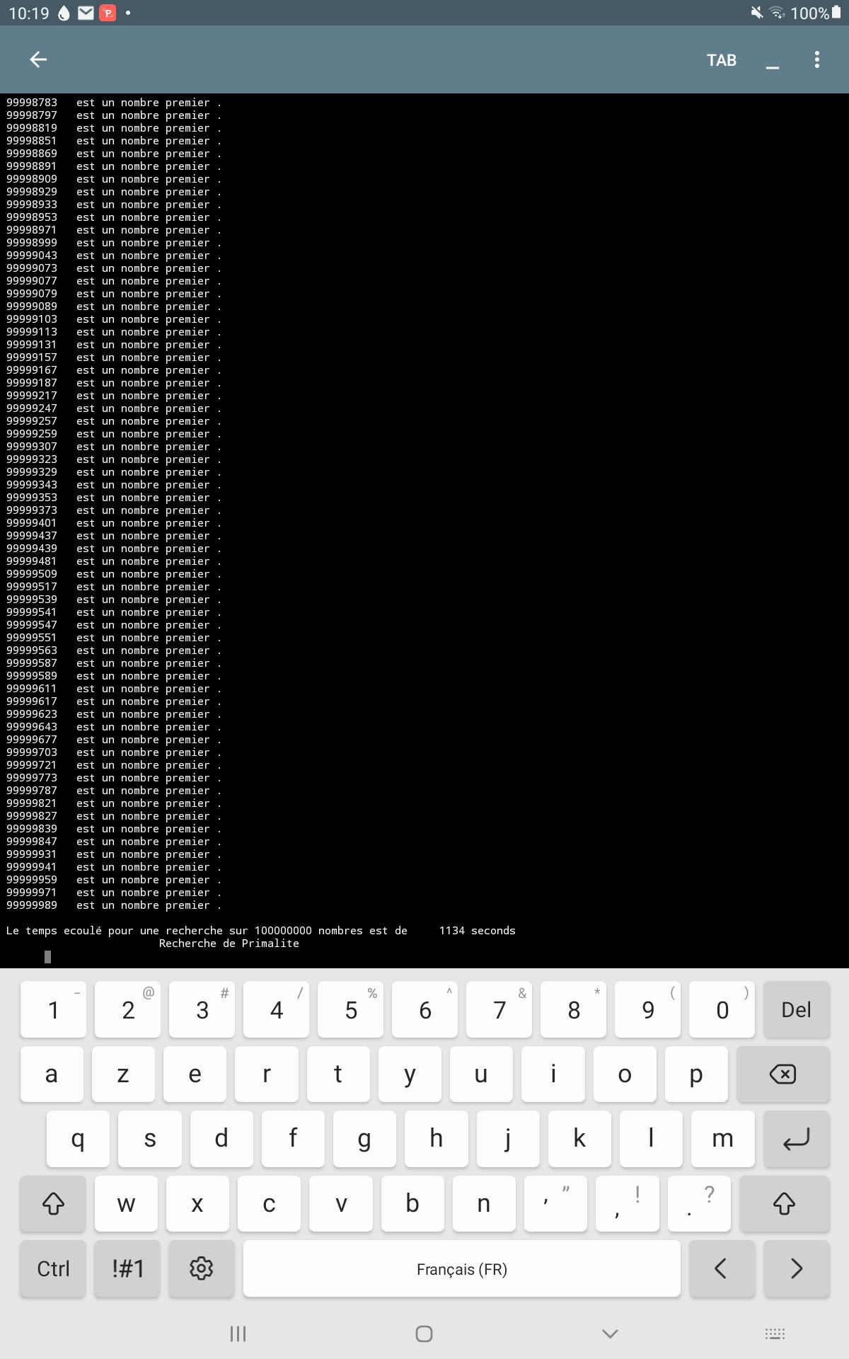 J’ai cherché jusqu’à 100 millions tous les nombres premiers et ça m'a pris 18 min et 54 s