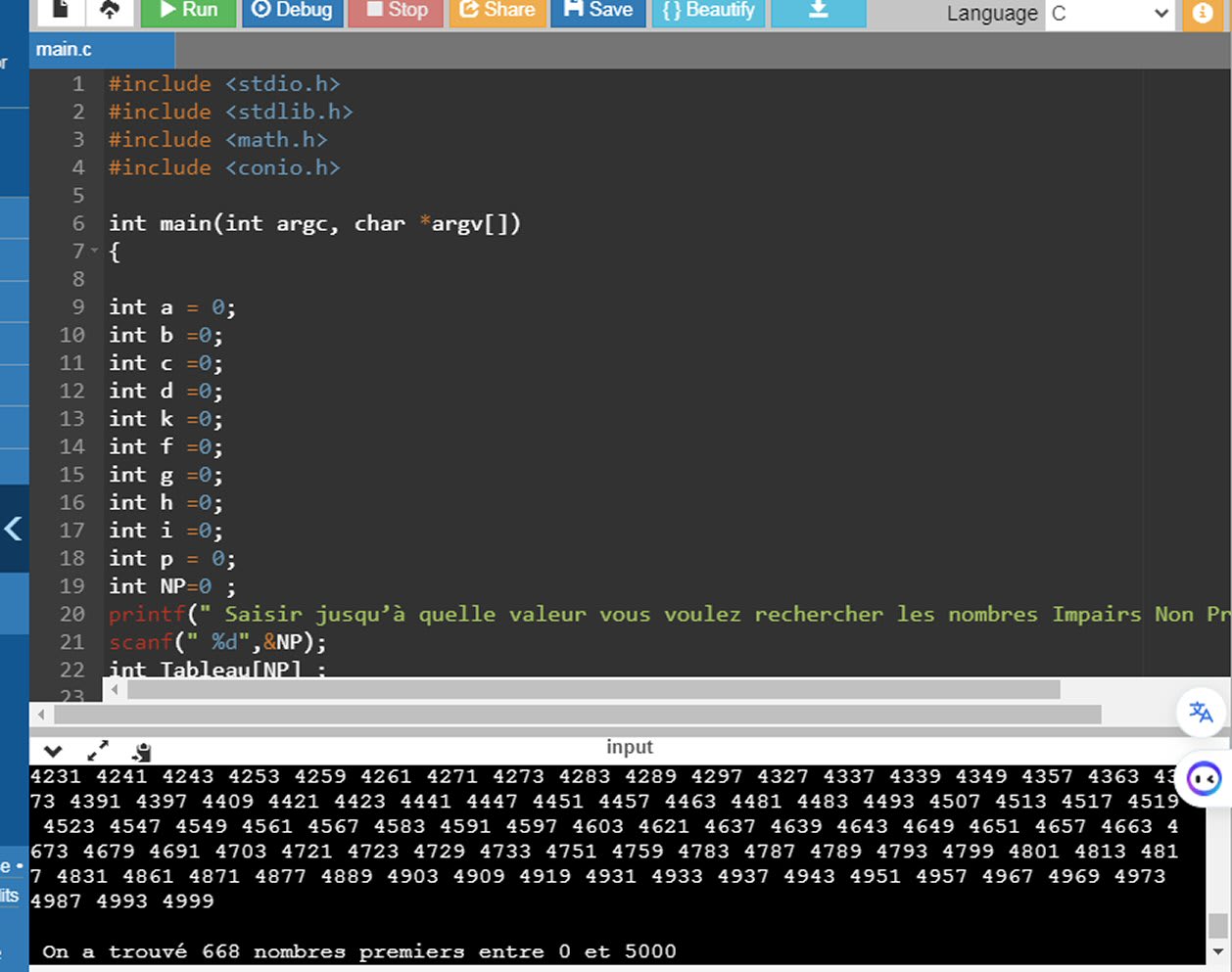 printf("\n\n\n LISTE DES NOMBRES PREMIERS : \n");