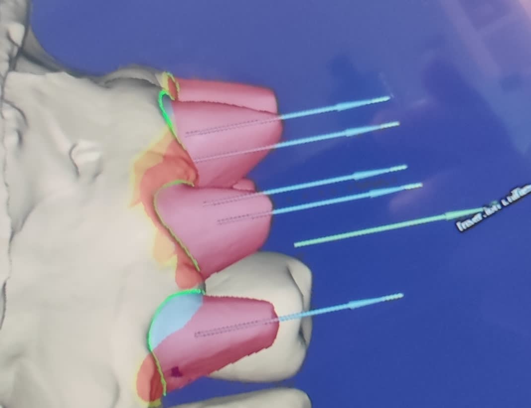 dans l exemple d avant que j ai montré j ai bien dit que je commençais par déterminer l axe global par la face linguale de la canine ( l axe commun des 2 canines plus précisément ) et qu après je n y touchais plus .