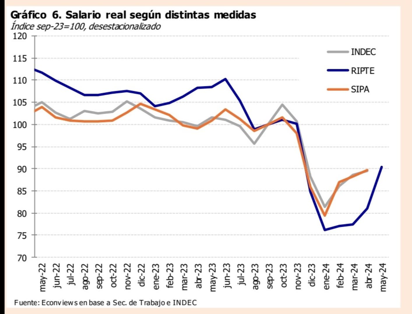Évolution du salaire réel Argentin selon 3 sources:
