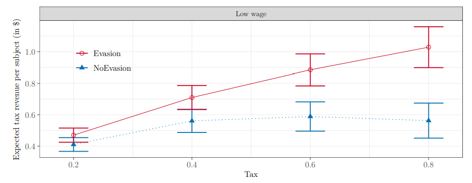 Interestingly, while participants were willing to work 37% more if they could evade taxes, they would on average try to avoid paying taxes on some 40%-50% of their income. Essentially, they would on average want to pay taxes on the same amount of work they did in a situation where they could not evade taxes but keep the additional work off the books.