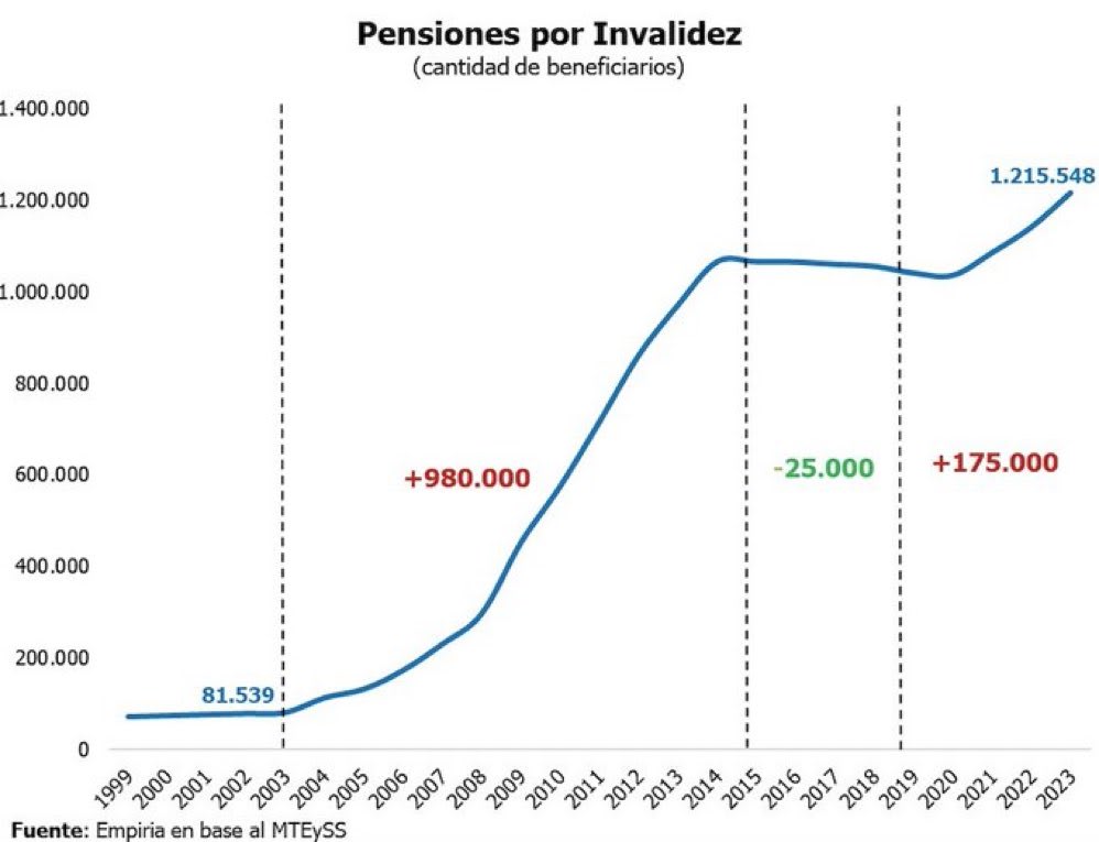 Evolution du nombre de pension d'invalidité sur 20 ans. Guère étonnant que le nettoyage fasse mal.
