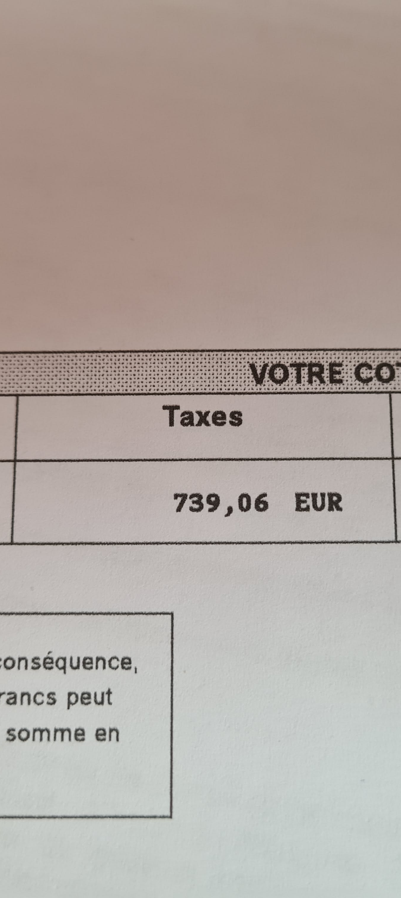 Ah bon ? la taxe qui apparait l'an dernier est de 0 , celle de cette année est 740 € .... après vérification sur l'appel ( je me fiais à la ma conversation avec l'agent d'assurance ...) alors 740 €/ an c'est un peu plus que 56 € ...