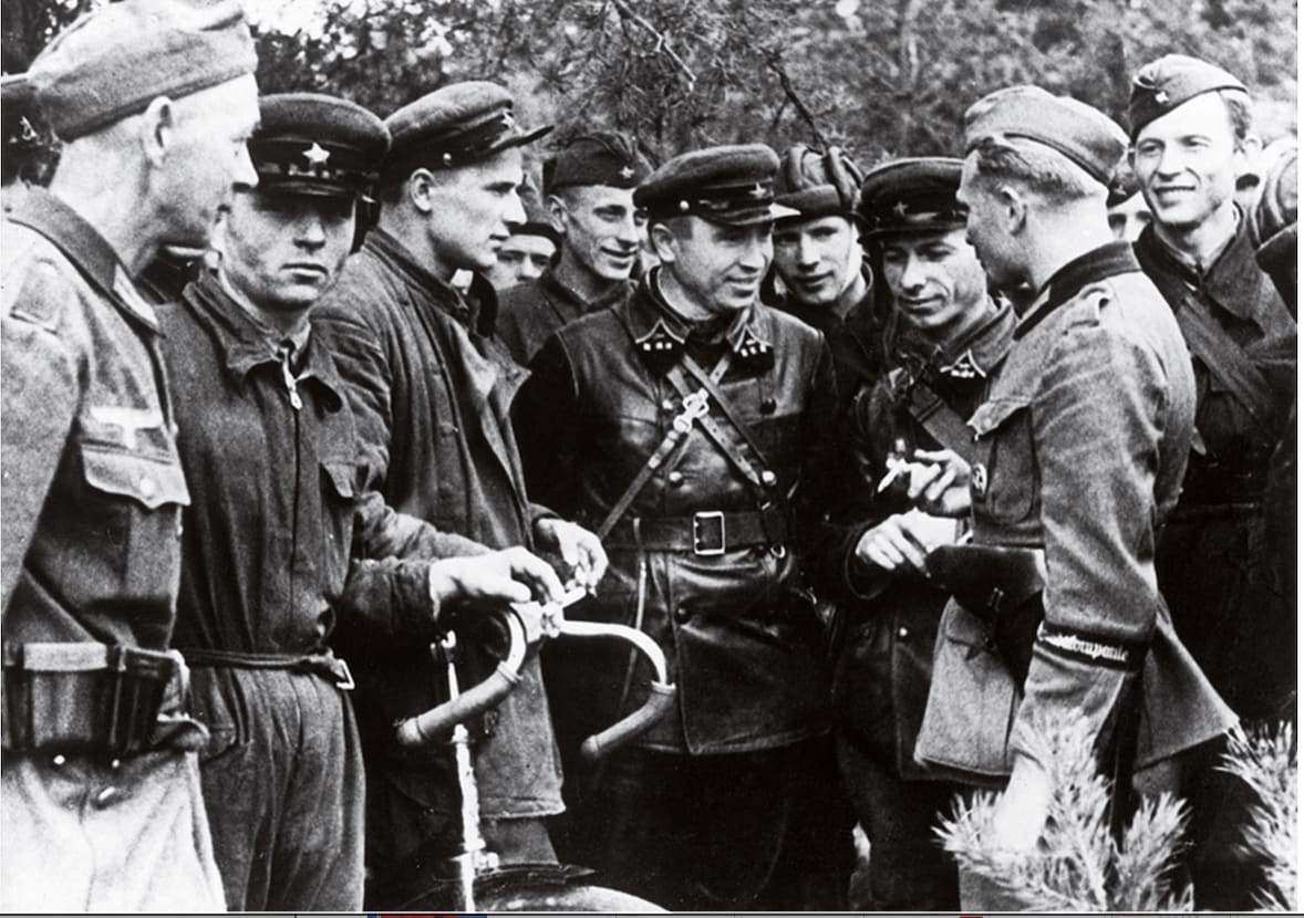 Pour résumer les cocos soviétiques avec le pacte germano soviétique on permis l'invasion de la Pologne qu'ils se sont partagée, invasion favorisée par la France et la Grande Bretagne qui bien qu'ayant déclaré la guerre à l'Allemagne sont restés l'arme au pied en attendant que les Polonais se fassent défoncer, ils s'en sont ensuite pris plein la tronche, bien fait pour leur gueule. Et ensuite c'est l'Allemagne qui a déclaré la guerre à l'URSS et ensuite aux Etats Unis et pas l'inverse. Les libérateurs ont donc été contraints et forcés d'agir et non pas spontanément pour défendre la veuve et l'orphelin.