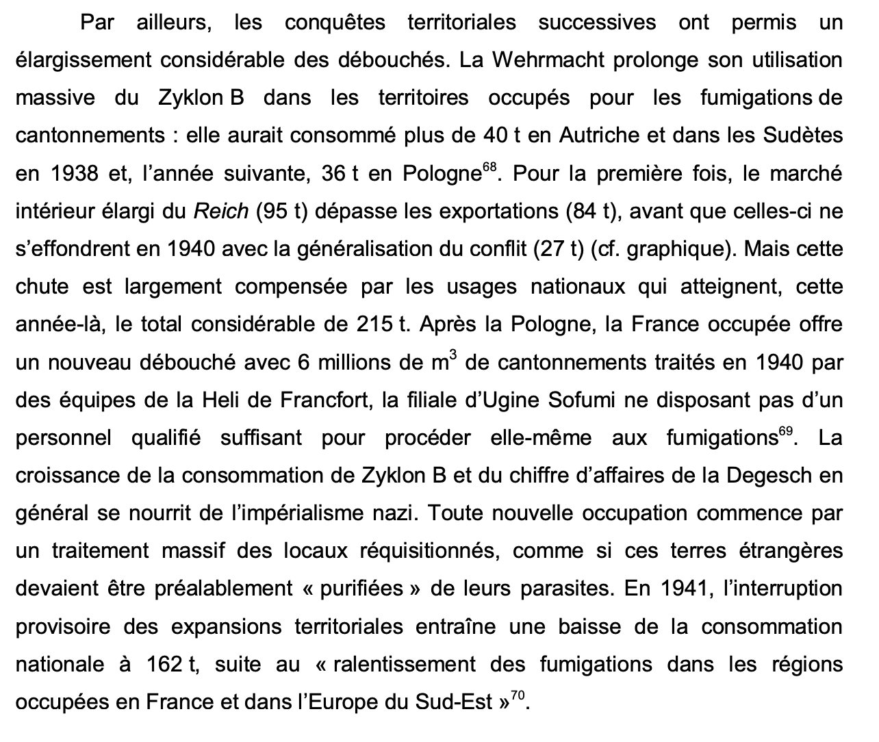 L'économie du ZyclonB est trop complexe pour tirer des plans sur la comète sur l'utilisation des quantités modestes produites en France.