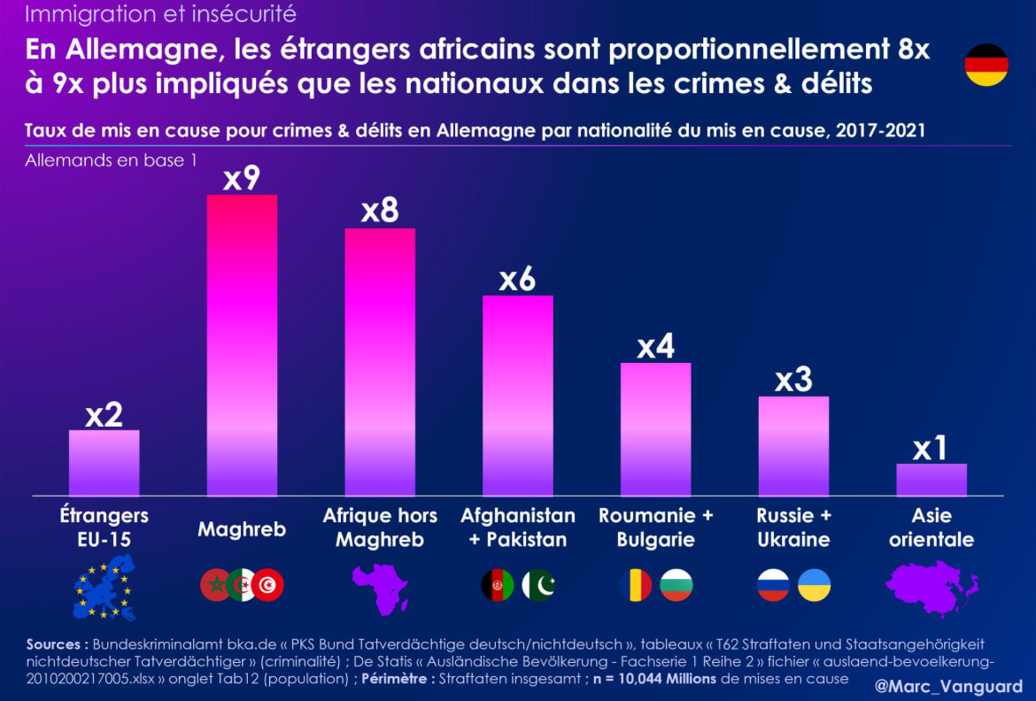 Selon les statistiques européennes de la délinquance les Africains sont très largement surreprésentés. Donc rémigration pour les Africains et tous les musulmans. Des boulets … et en plus ils nous coûtent du pognon. On paie pour des types qui apportent l’insécurité et l’intégrisme.