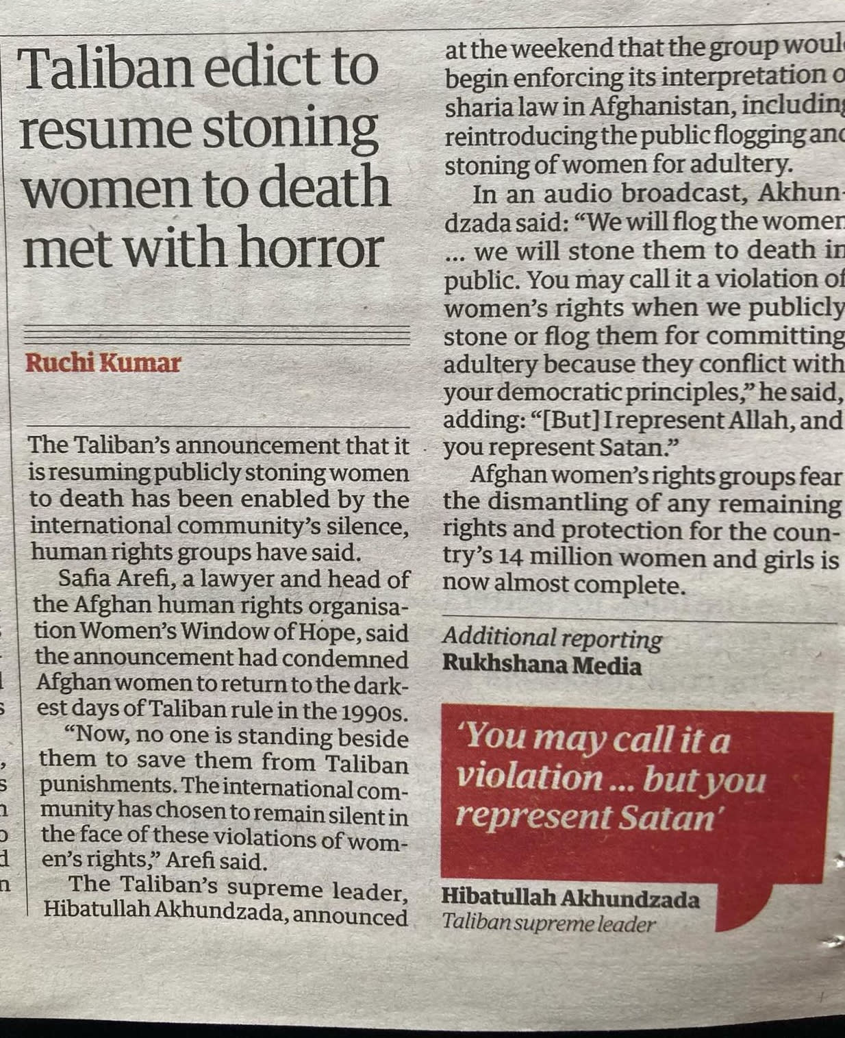Afganistan : Lapidation des femmes réputées adultères rendue officiellement légale.