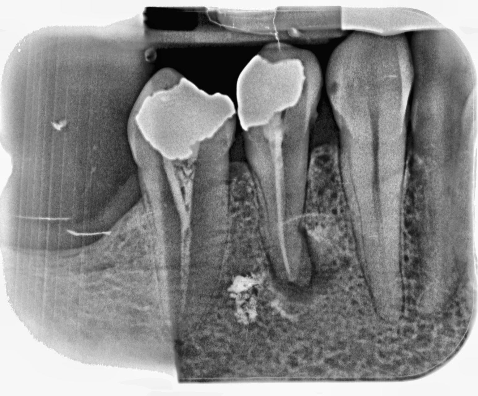Le cas était amusant, le confrère qui avait obturé n'avait pas trouvé le canal lingual.