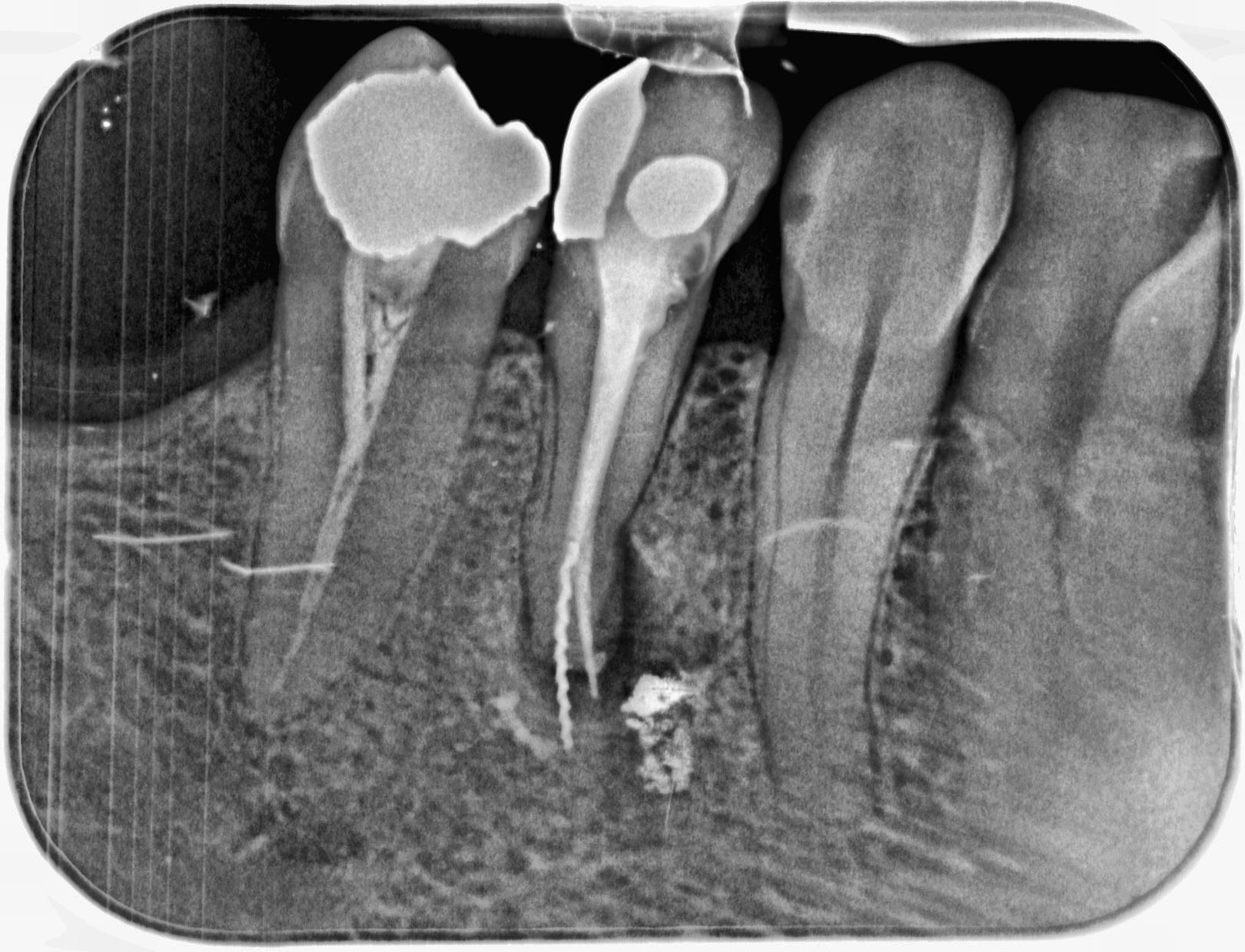 Le cas était amusant, le confrère qui avait obturé n'avait pas trouvé le canal lingual.