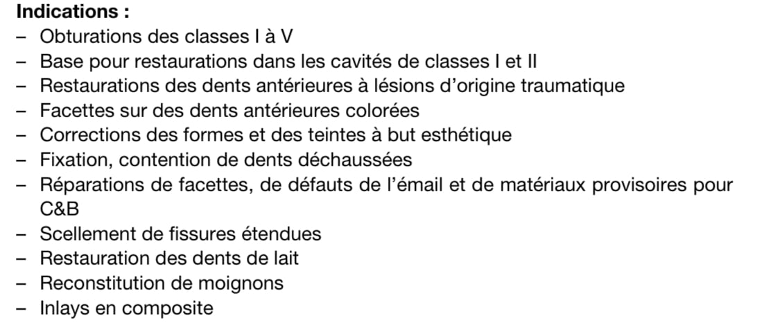 Il est bien précisé dans les indications la réalisation d’inlays en composite.