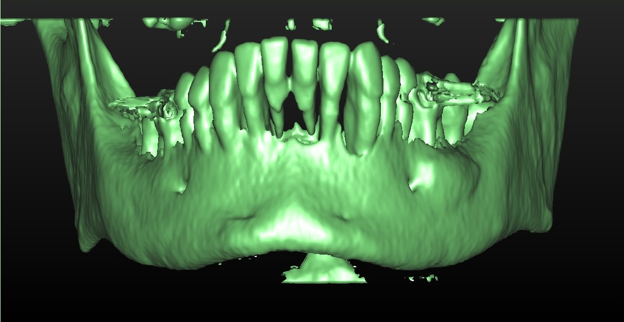 Patiente 50 ans, aucun problème de santé mis à part léger cholestérol, pas de tabac ....traitement paro ancien par un confrère le scanner est un peu "violent" les rétro-alvéolaires sont un peu moins négatives...