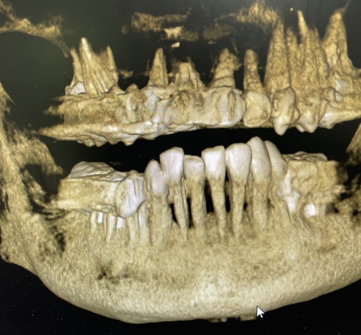 Forcément le tout s'était encore dégradé, au point qu’à part un complet amovible, de la paro et un implant par ci par la personne n’a voulu faire quoique ce soit.