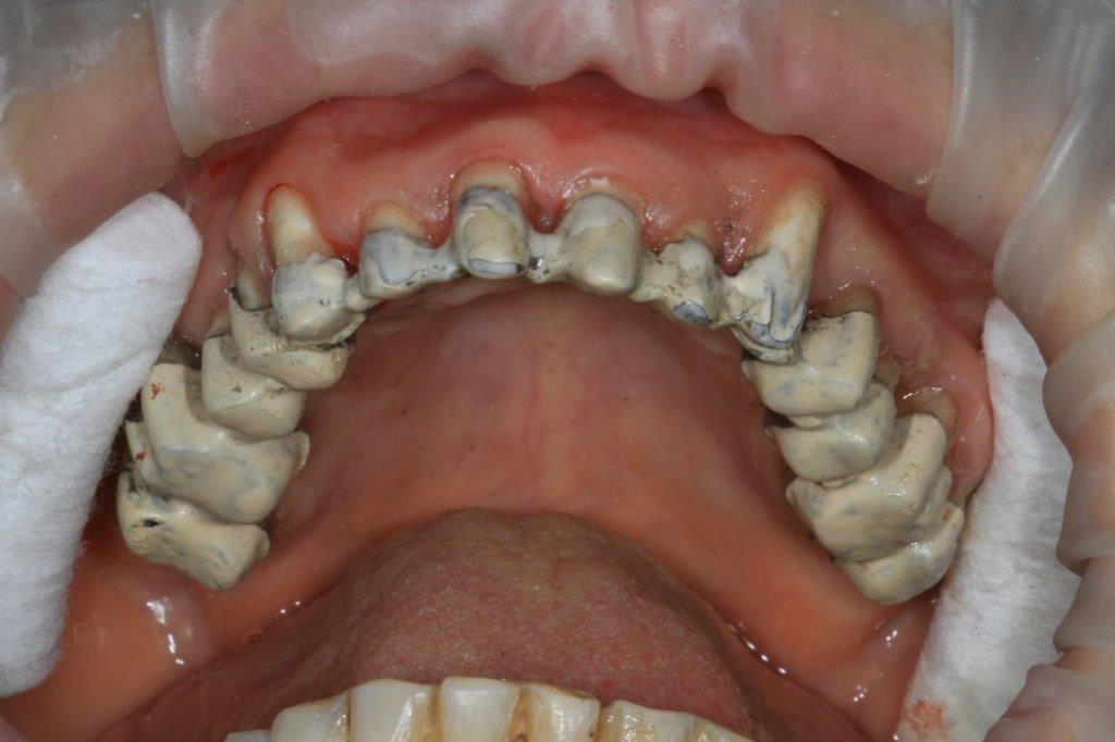 1er rdv 11/06 pose 11/12 donc 6 mois, 3 mois de provisoire. Prothèse à l'ancienne empreintes élastomère, wax up à la cire, provisoires par moulage du wax up.
