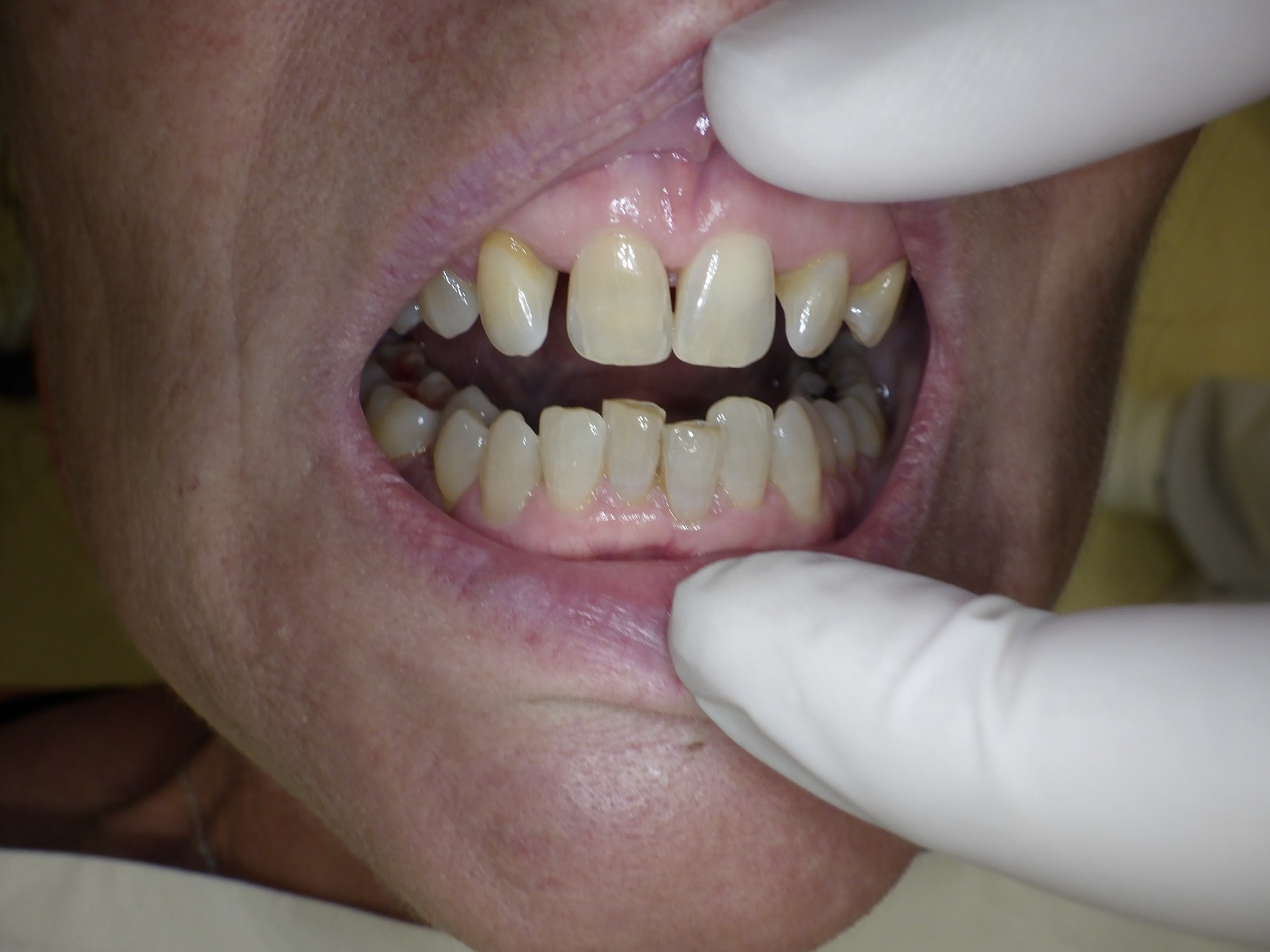 a cela tu rajoutes l absence de canines , la latérale pas en forme la pm qui n a pas l air alignée soit tous les ingrédients d un pb occlusal possible.