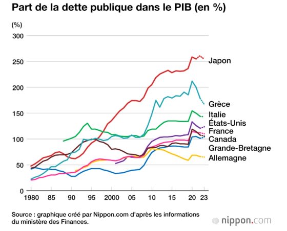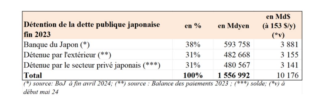 90% de la dette du japon est détenue par les japonais... c est la difference fondamentale entre nous et eux, et c est aussi pour cela que leur destin est bien différent du nôtre.