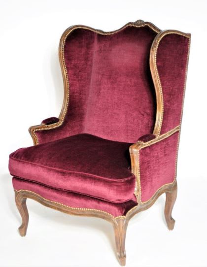 l'autre : un fauteuil à deux oreilles.. pour soutenir la tête des malades et dit-on entendre leur confession, le prêtre collant l'oreille côté extérieur . Ce fauteuil est appelé confessionnal . ( on tend l'oreille...aux murmures)