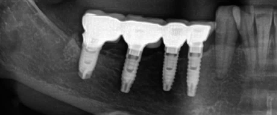 Je dois déposer 4 céramiques solidarisées sur implants TBR 44 45 46 47 pour réfection. (réalisation en très large sous-occ).