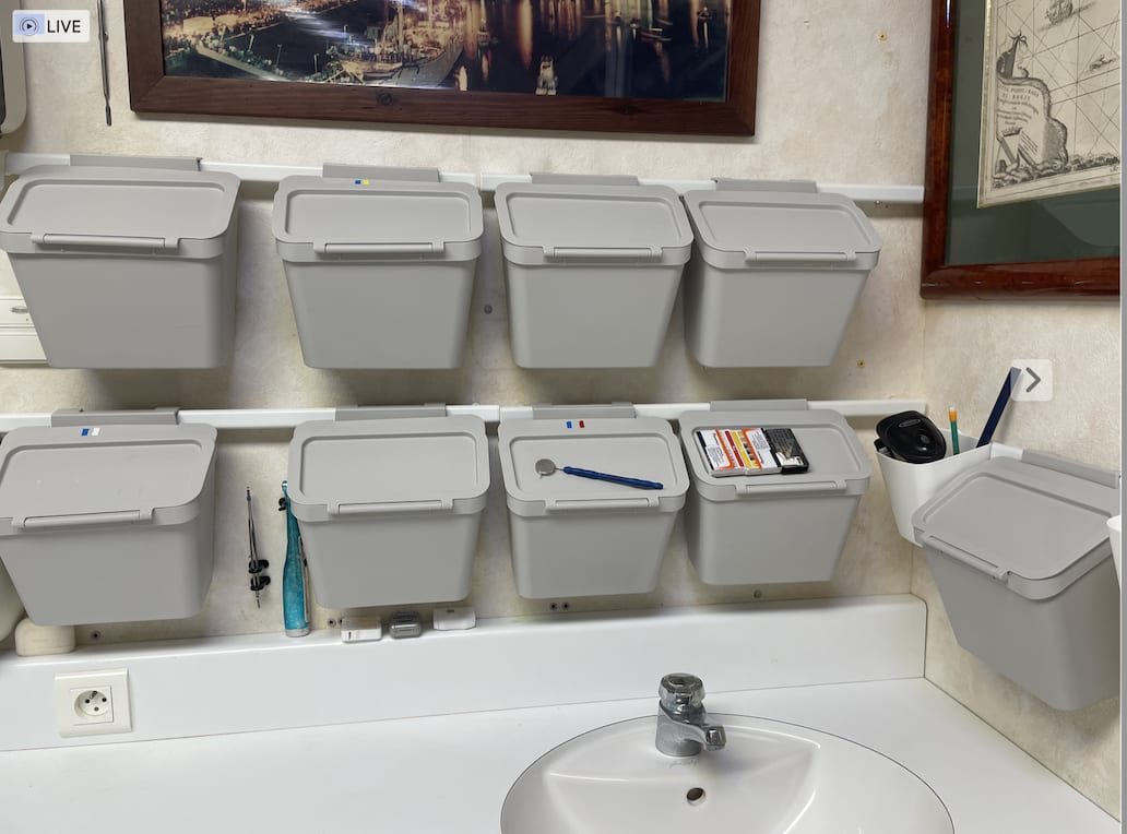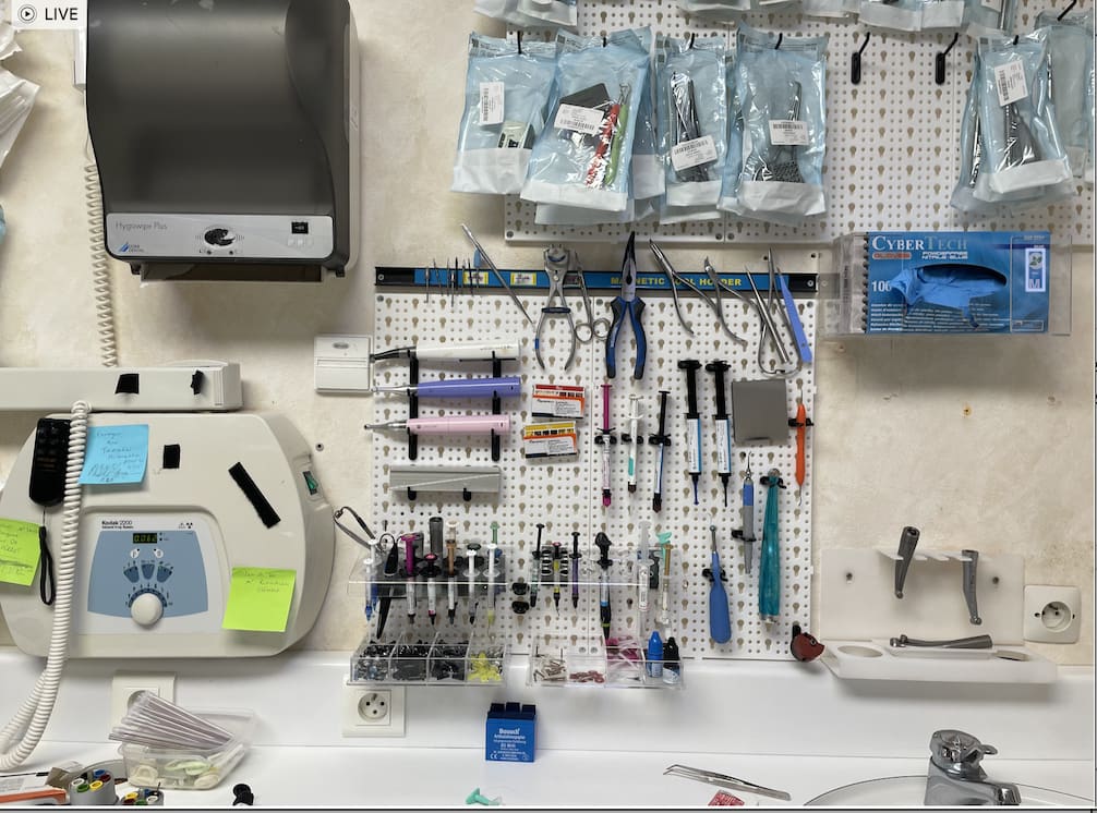 Ca doit faire du 30 heures fauteuil. Des fois j'ai des crises organisationelles le week end qui ne donnent pas forcément des résultats probants. Ca par "exemple ca m'a pris 2-3 WE , j'en avais marre des cassettes et tub and trays que je trouvais pas géniaux ( prend trop de place et pas assez souples en organisation) . Ca par exemple ca m'a pris 2 WE très pratique mais ca faisait un peu brico-dépot du coup je suis passé à des pôubelles IKEA avec codes couleurs par exemple 3 boites pour l'OC l'endo et la prothèse correspondant aux couleurs des instruments dans les sachets les fraises crampons anneaux et instruments d'endos en vrac dans des micro cassettes nichro minox. On ne peut pas faire plus compact en plus ça prend pas de place dans l'autoclave.