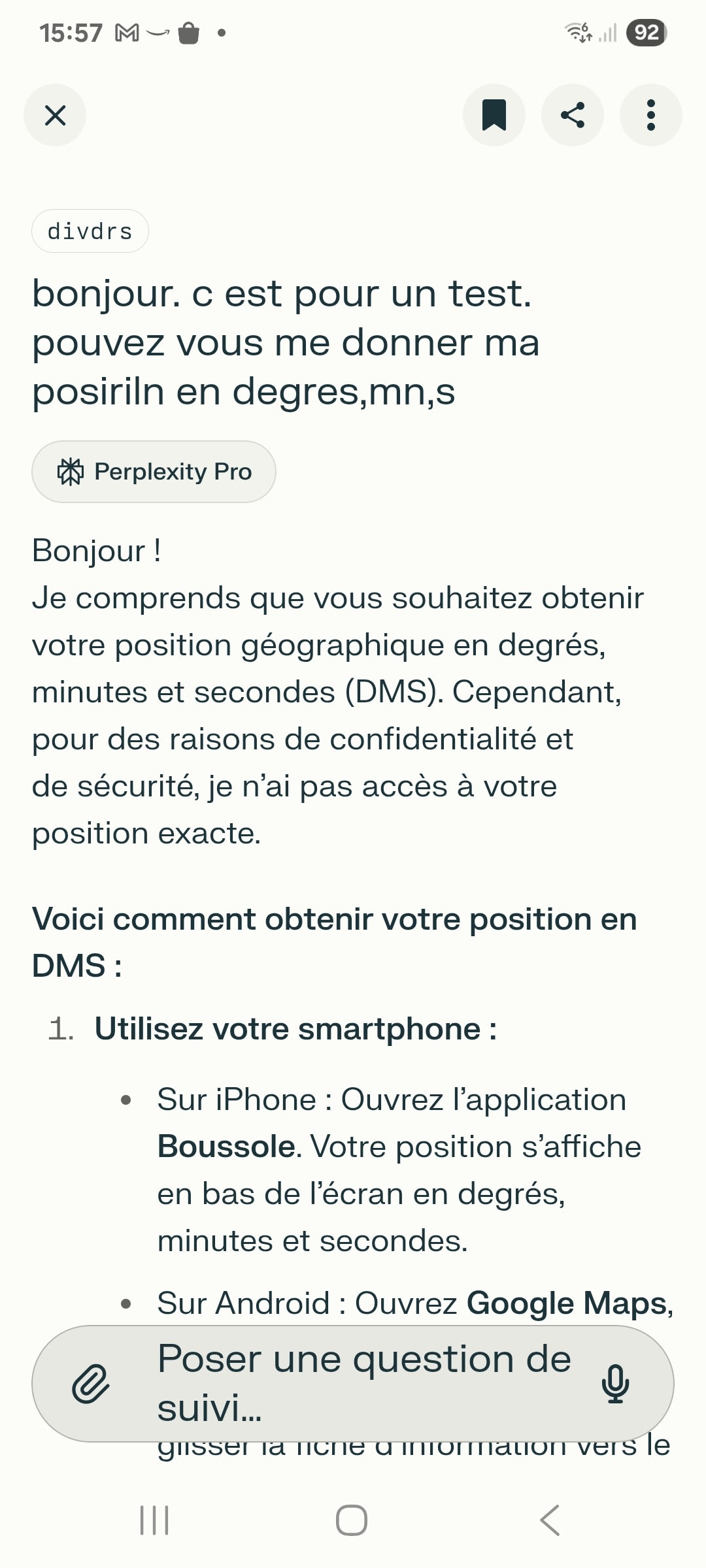 2/ si tu donnes les coordonnées en décimal les urgences les convertissent en 30 sec
