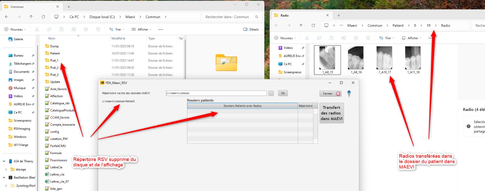pour ceux que cela intéresse, j'ai développé un module permettant de récupérer les radios faites dans RSV-Imaging lancé depuis MAEVI pour les placer dans les dossiers des patients car MAEVI sait lancer le logiciel mais pas récupérer les radios