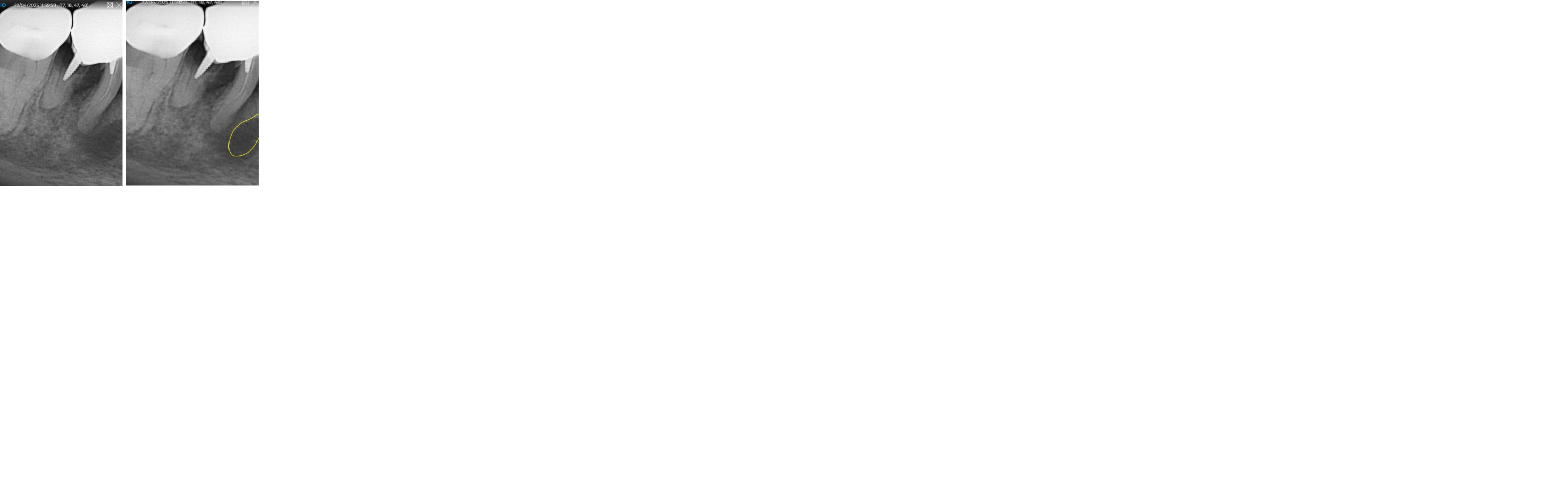 Franchement je ne distingue rien sur la radio. Sachant qu'il y a un cbct, il faudrait voir les coupes avant.