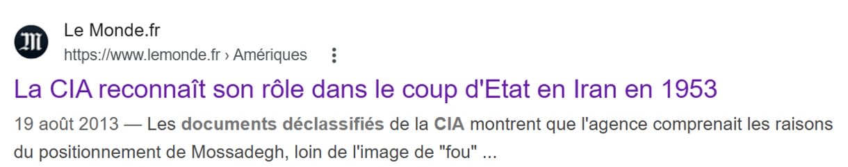 C'est les pas les américain qui ont mis le shah d'iran en place pour conter la nation nationalisation du petrol qui devait directement rapporter des dividendes au peuple iranien ?