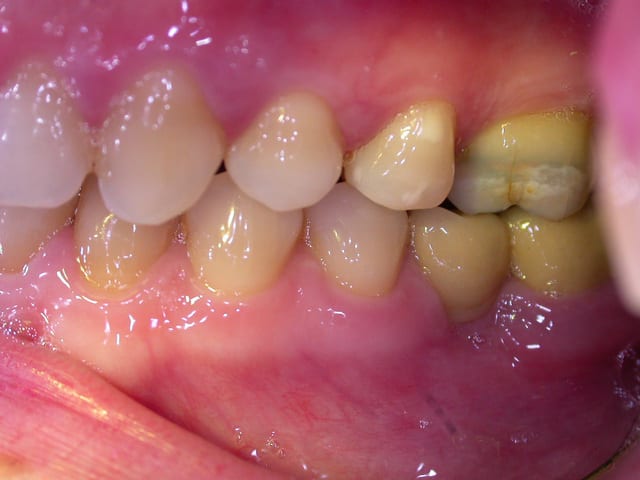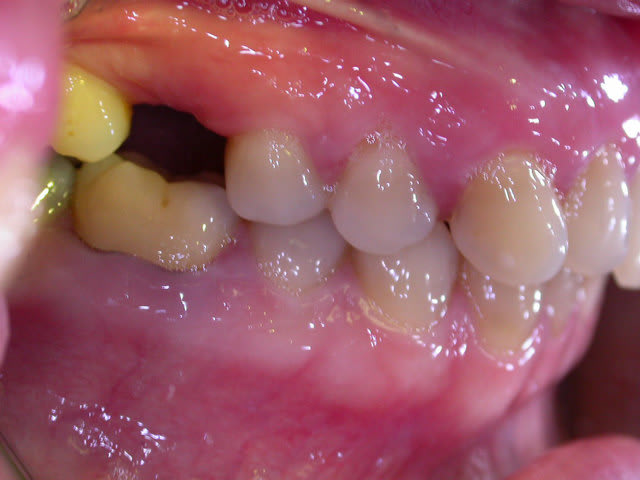 a perdue des dents par carie très jeune ... dents remplacée en bas par un petit bridge avec une dent en extension