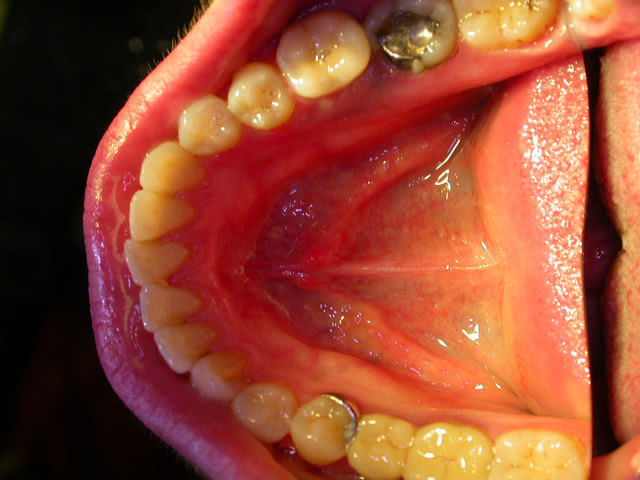 Bon controle de plaque, pas de tartre ni de colorations, inflammation en palatin seulement...