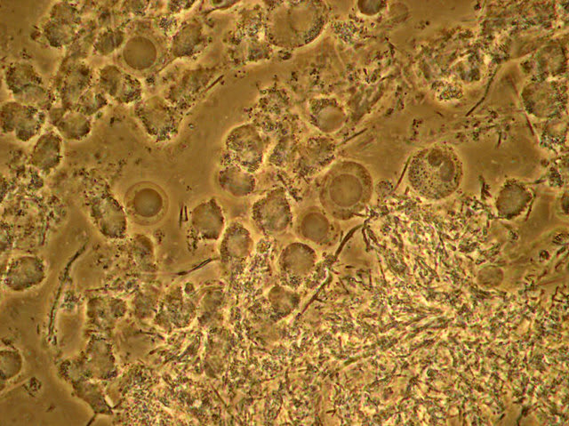en fait en regardant la video j'ai decouvert sur un secteur ce que je pense etre des fusobacterium nucleatum noyés dans un amas cellulaires.......comme quoi il faut regarder plusieurs fois ........celui- la il evoque quoi ...