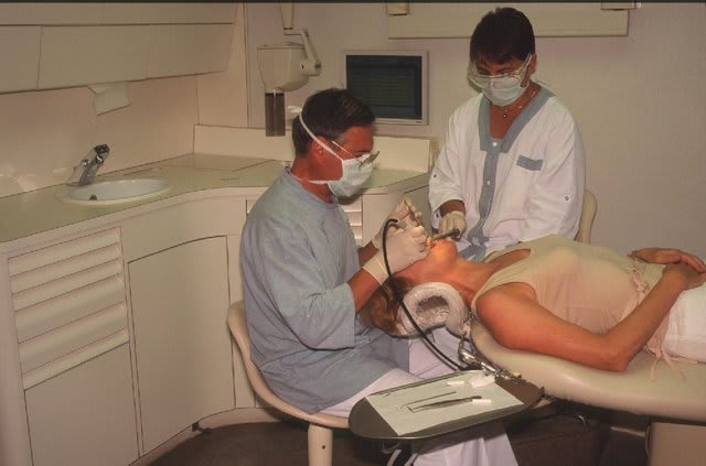 Je vais pas me faire des amis... Mais quand je vois la photo envoyée par Marc avec l'assistante au fauteuil , je me demande ce qu'elle peut faire d'autre à part tenir la pompe a salive : Pas d'accès à l'instrumentation rotative, pas d'accès aux tiroirs, pas d'accès au plateau... C'est bizarre ce concept, expliquez moi ou est l'ergonomie ?