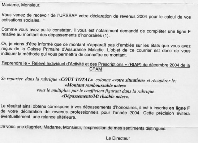 Mais si votre pourcentage d’actes avec dépassements d’honoraires et d’actes hors nomenclature est plus élevé que le Dr X, vous pourrez payer jusqu’à 20 000 de plus chaque année... sans profiter de l’augmentation des lettres-clé puisqu’elles ne concerneraient que les actes opposables !