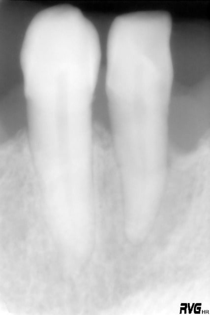 Oui ça ressemble à un canal latéral non obturé, d'autant que le TR parait étrangement rectiligne, même pour une incisive inf.