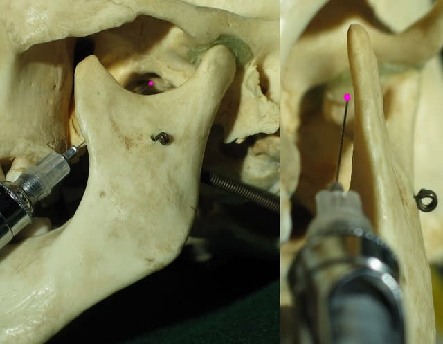 Il y a intérêt à faire défiler toute son ostéologie / anatomie nerveuse dans ses neurones pour ne pas se planter, ni se piquer le doigt : c’est une anesthésie quasi à l’aveugle sur un patient qui ne demande qu’à être soulagé des ses douleurs goniaques.