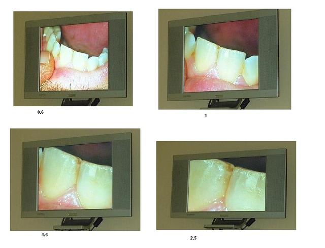 Merci Portland et Sbire pour ces précisions. D'après ce que je comprends, le réglage .6 correspondrait à un grandissement 0.6 x 12,5 c'est à dire 7,5. Cela me paraît énorme pour travailler sur plusieurs dents (détartrage..)